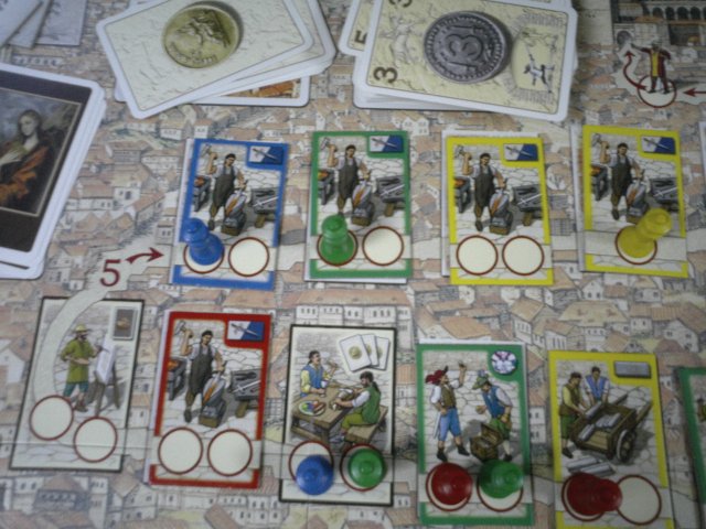 ボード上の商店タイルの配置と全く噛み合っておらず、非常に歯痒い状態が続きます。