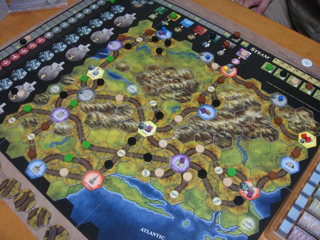 鉄道網を築き、都市から都市へと荷物を運んで収入や勝利ポイントを稼いでいきます。