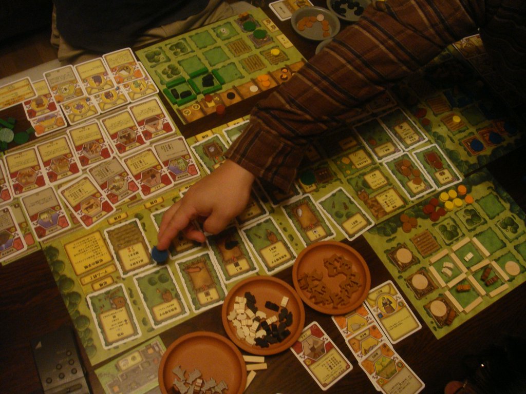 一方もう一卓はE大臣、N島さん、あねごの3人で「アグリコラ+拡張:泥沼からの出発」。