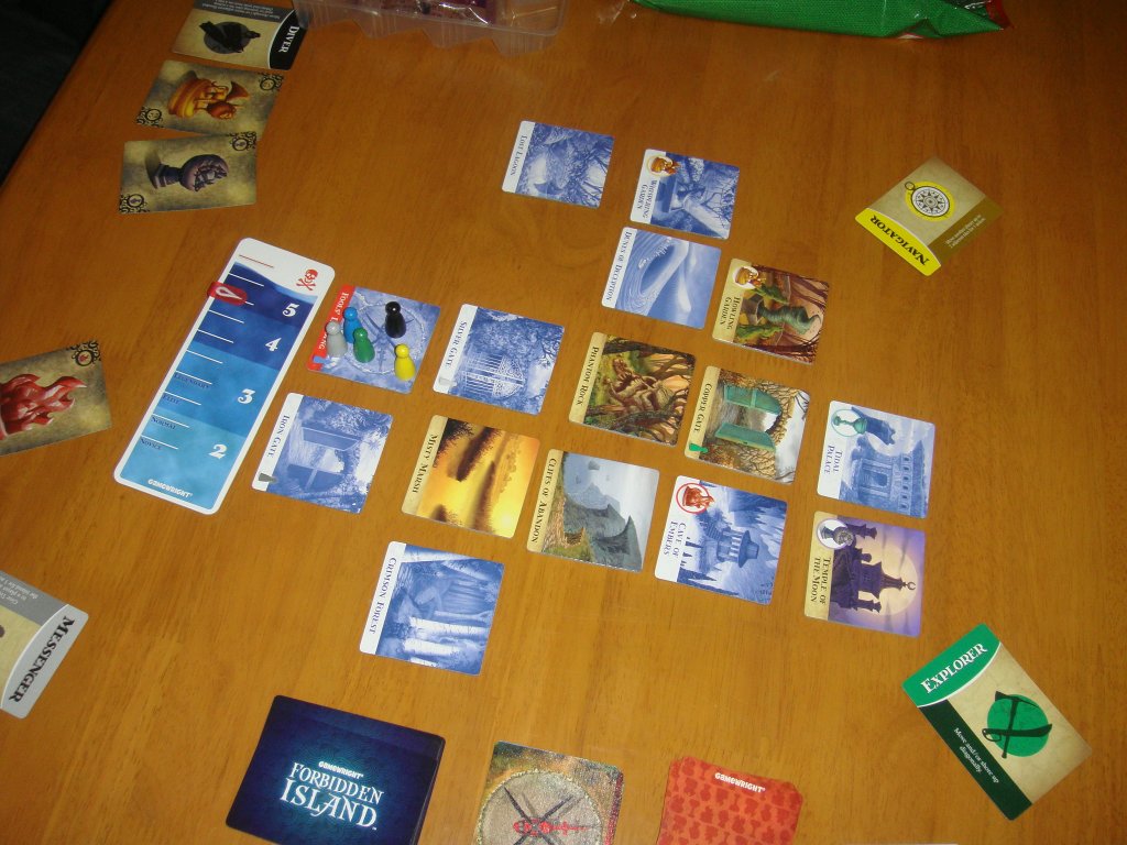 財宝を手に入れるためにはパンデミックと同じようにカードを引いたり交換したりして同種4枚を集め、特定の場所に行かなければなりませんが、それを為すまでの間、水没したタイルを「補修」したりして、時間を稼ぐ必要があります。