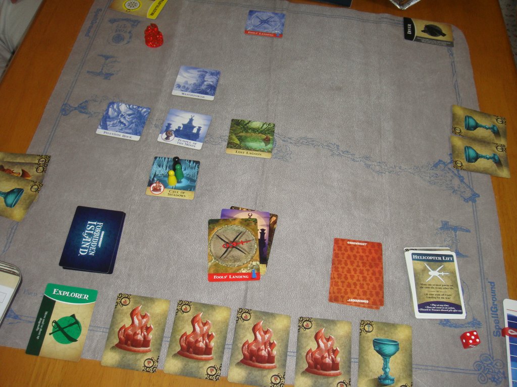 結局最後は浸水カードの山札が浸水枚数を上回ってしまい、4枚目の財宝を目前にした状態でヘリポートが水没して敗北となりました><