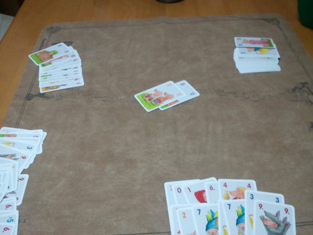 最初のプレイでは手札がずっと偏ってボコボコになりましたが、ルールミスが発覚したので続けて正しいルールでプレイ。